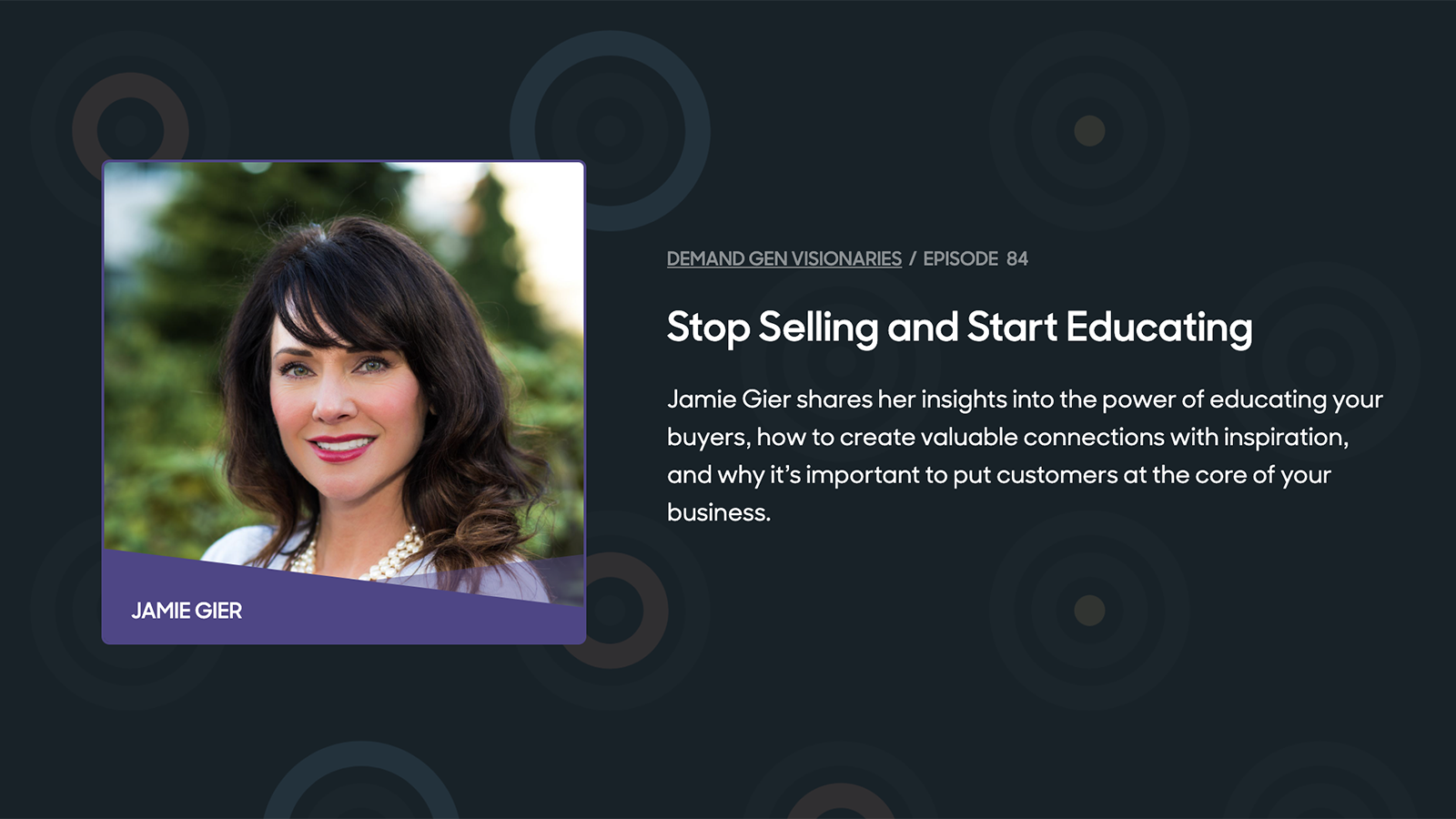 Jamie Gier shares her insights into the power of educating your buyers, how to create valuable connections with inspiration, and why it’s important to put customers at the core of your business.